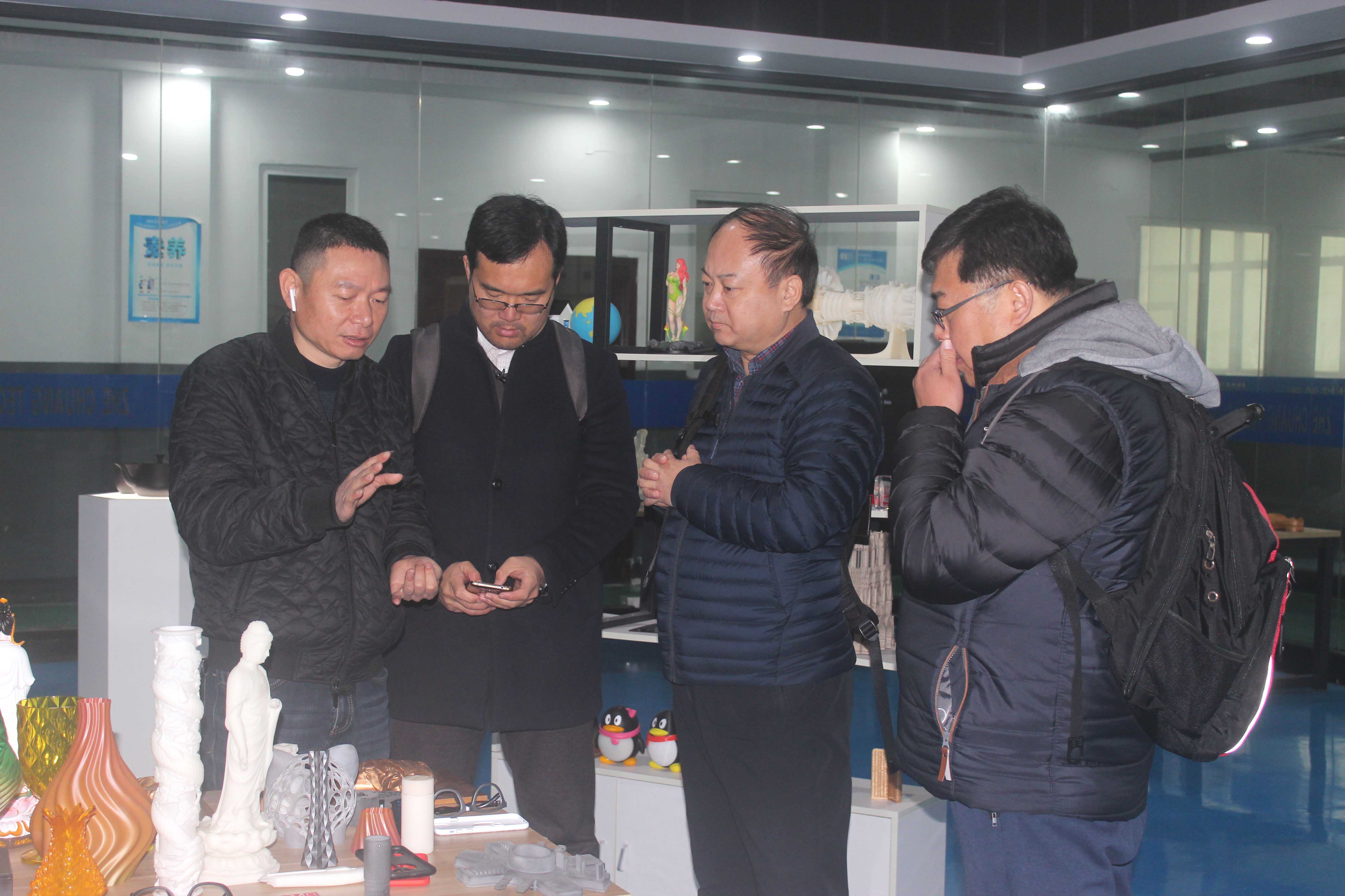 隨后,考察團(tuán)在陶董的陪同下,參觀了3D打印材料、3D打印車間,詳細(xì)了解了工業(yè)級3D打印機(jī)的工作原理??疾靾F(tuán)經(jīng)過參觀了我們自主研發(fā)的材料和機(jī)器設(shè)備,更加認(rèn)可了公司的實(shí)力,對我們未來的發(fā)展有了更足的信心。