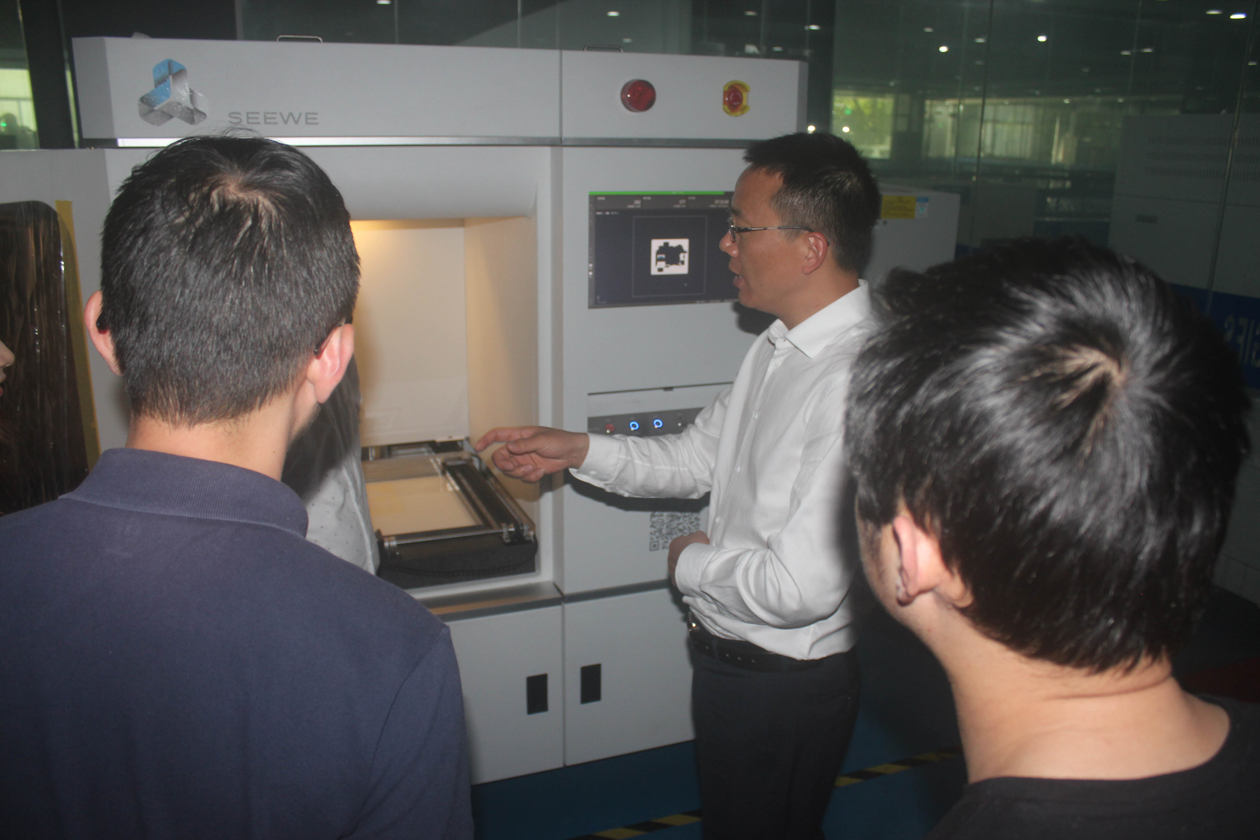 隨后在陶總的陪同下,大家首先參觀了3D打印車間。參觀過(guò)程中,陶總講解了SLA工業(yè)級(jí)3D打印機(jī)打印流程,3D打印機(jī)的工作原理,組織領(lǐng)導(dǎo)觀察SLA成型方式,并展示了浙創(chuàng)自主研發(fā)的SLA工業(yè)級(jí)3D打印機(jī)及3D打印材料。在了解浙創(chuàng)3D打印園目前各項(xiàng)工作已經(jīng)有了完整的工序后,領(lǐng)導(dǎo)一行給予了認(rèn)可,并期望浙創(chuàng)繼續(xù)堅(jiān)持科技創(chuàng)新發(fā)展理念。