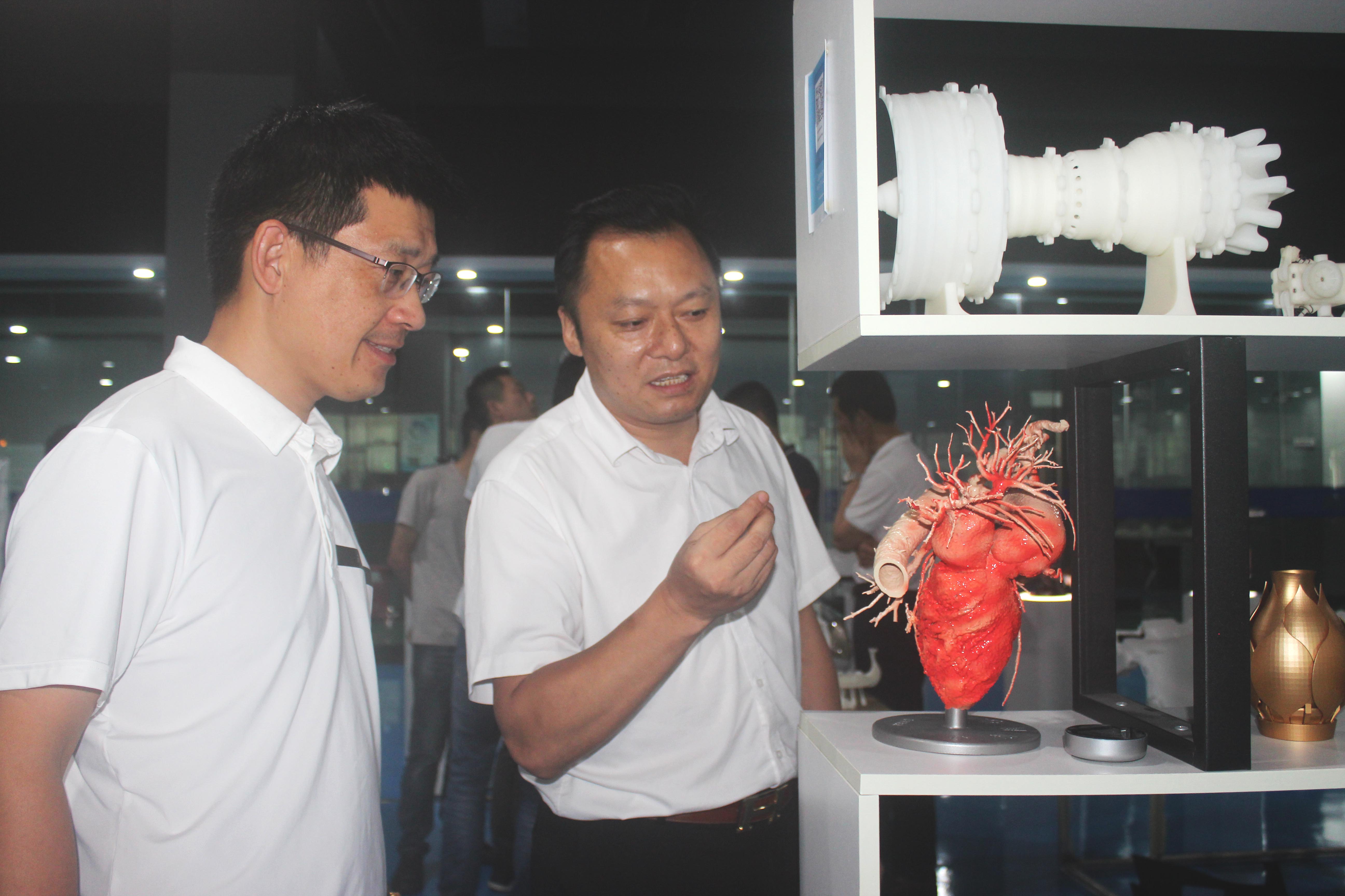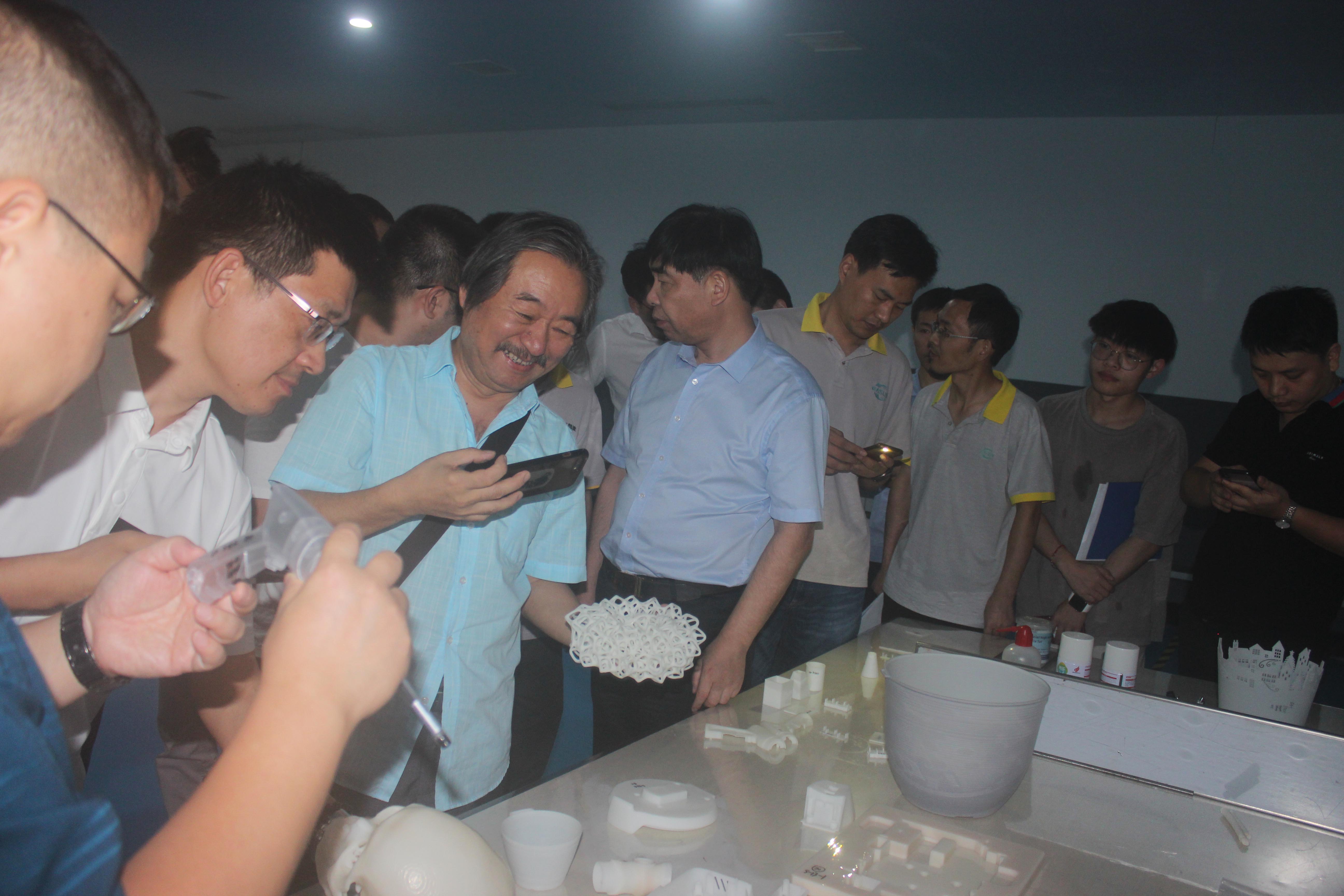 在會(huì)議結(jié)束后,來自各大企業(yè)的代表在我司領(lǐng)導(dǎo)下參觀了3D打印車間以及3D打印樣品間。近距離觀摩我司自主研發(fā)的SLA工業(yè)級(jí)3D打印機(jī)工作過程,以及3D打印在汽車配件、日用家電、文創(chuàng)教育等領(lǐng)域的具體應(yīng)用案例。